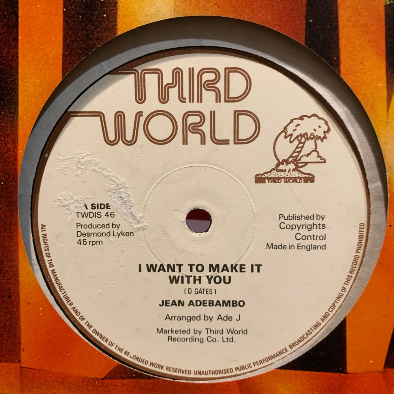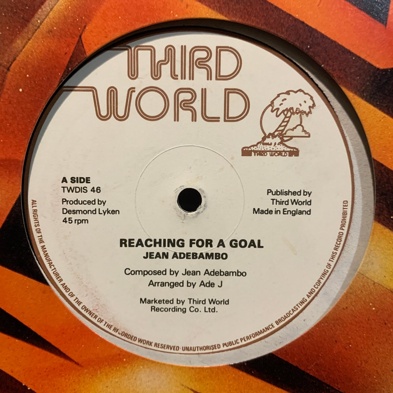 light wear on the sleeve, small mark at the beggining of a side, plays fine, b side has some marks on b side by the end of record possible few clicks.