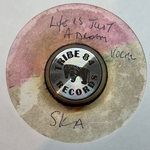 label totally damaged, lots of writing, heavy surface wear